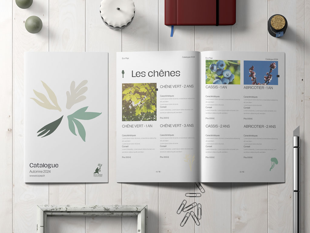 Identité visuelle, catalogue de produits, flyers et web design – 2024